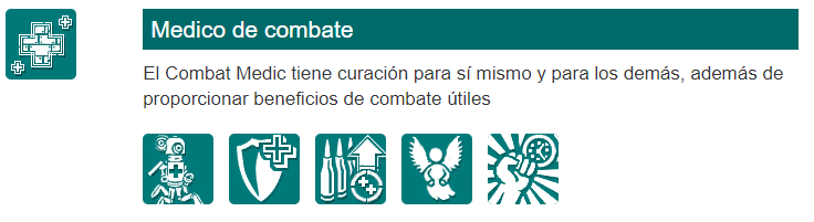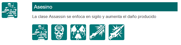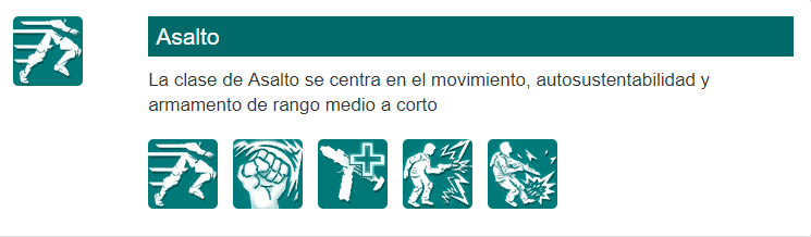 Actualmente existen 5 tipos de clases incorporadas, Asalto, Asesino, Guardián, Medico de Combate y demolicionista, los mismos al comenzar el juego nos dará la opción de comenzar con una clase y a medida que avanzamos en el juego podremos desbloquear las demás.